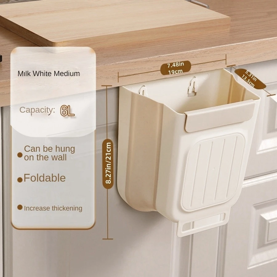 Foldable Trash Can is a smart and space-saving solution designed for modern kitchens. This foldable trash can easily attaches to kitchen cabinet doors, drawers, or walls, providing a convenient place to dispose of food scraps and everyday waste while cooking. Its practical design allows you to keep your kitchen clean and organized without taking up valuable floor space.