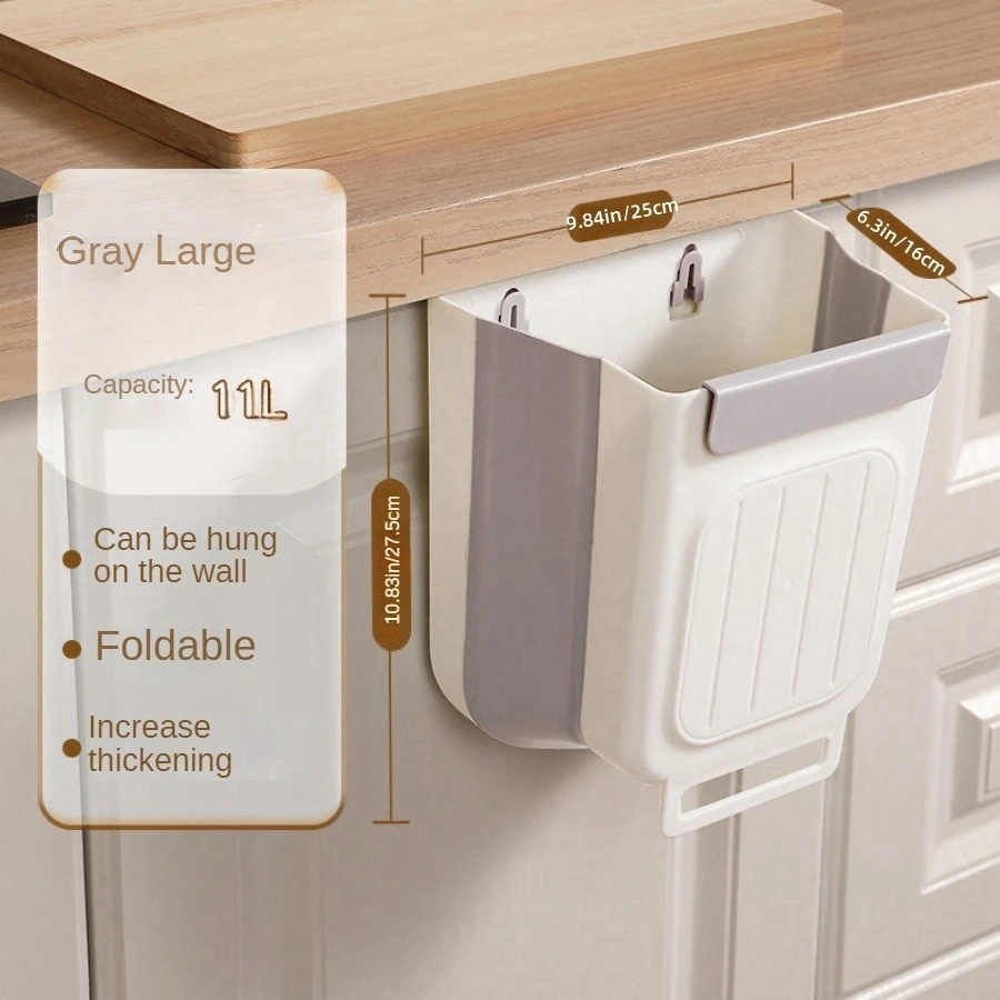 The innovative foldable trash can features a collapsible design that allows it to expand when in use and fold away neatly when not needed. This makes it perfect for small kitchens, apartments, or anyone who wants a clutter-free cooking area. The wall-mounted option also makes installation simple, allowing you to attach the foldable trash can to cabinet doors or walls in seconds.